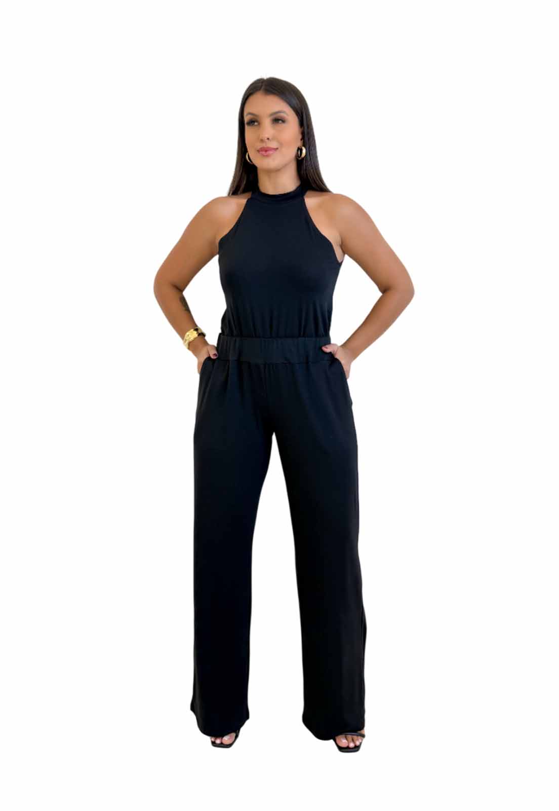 Conjunto de blusa gola alta de amarrar no pescoço e calça pantalona. Elástico na cintura que ajuda a valorizar e definir ainda mais o corpo. Bolsos laterais  que ajudam a dar um charme especial a roupa.