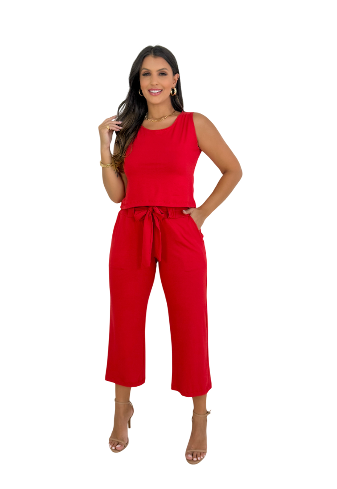 Conjunto de Ragata e calça pantacourt. Elástico na cintura que ajuda a valorizar e definir ainda mais o corpo. Bolsos laterais que ajudam a dar um charme especial a roupa.